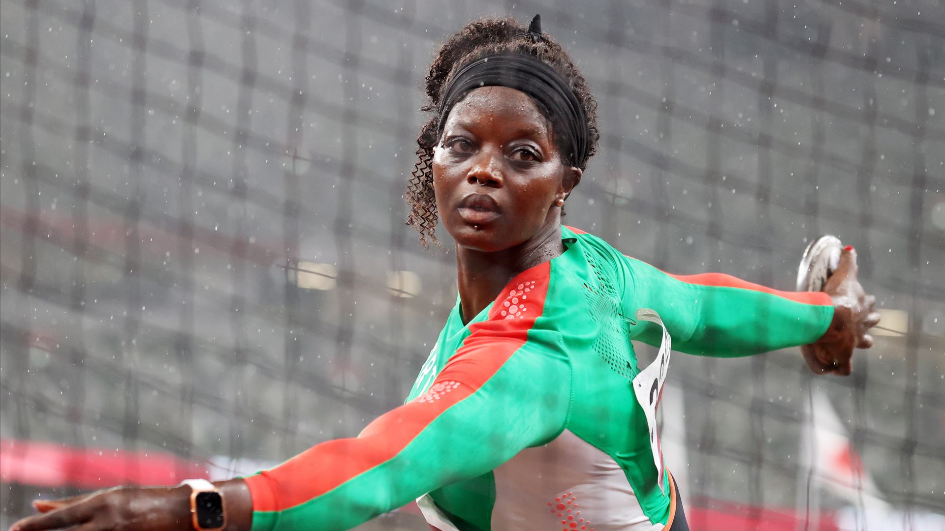 Numa final atípica, que teve de ser interrompida, já demasiado tarde, devido à chuva forte em Tóquio, a lançadora ficou a dois metros e meio do recorde nacional, no seu melhor ensaio, em que registou 63,93 metros.
