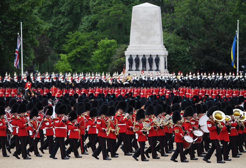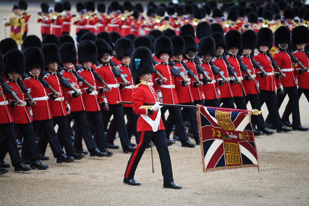 A parada assinala o dia de aniversário da coroação da monarca. São mais de 1.500 militares, acompanhados de músicos e cavalos, a desfilar com toda a pompa desde o Palácio de Buckingham até a praça da Horse Guards Parade.