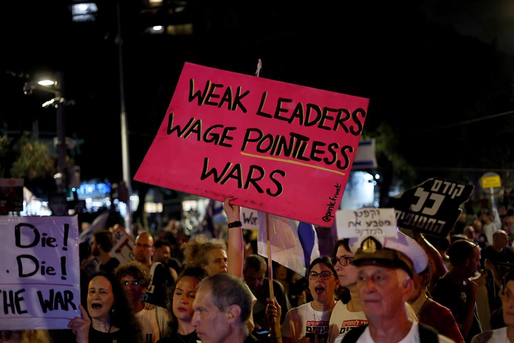 No final de setembro, uma marcha com cerca de mil pessoas em Telavive dirigiu-se à sede do Likud, partido do primeiro-ministro Benjamin Netanyahu, para exigir o fim da guerra. Entre os manifestantes estavam pais de soldados destacados na Faixa de Gaza.