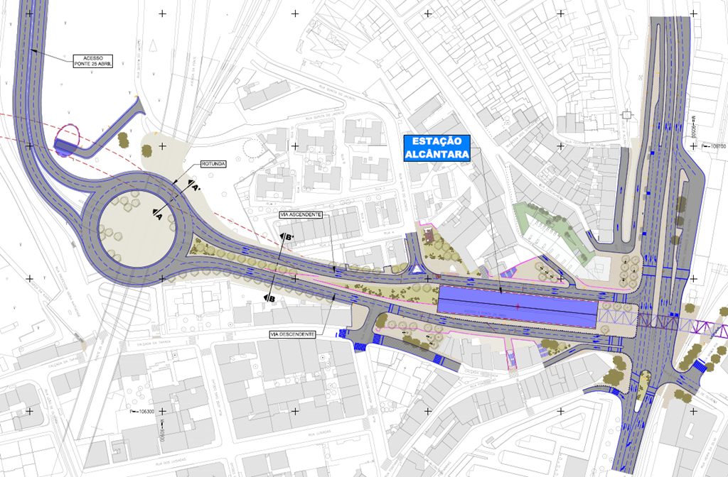 A construção desta estação vai levar a mudanças no acesso à Ponte 25 de Abril em Alcântara, incluindo a criação de uma rotunda por debaixo da ponte.