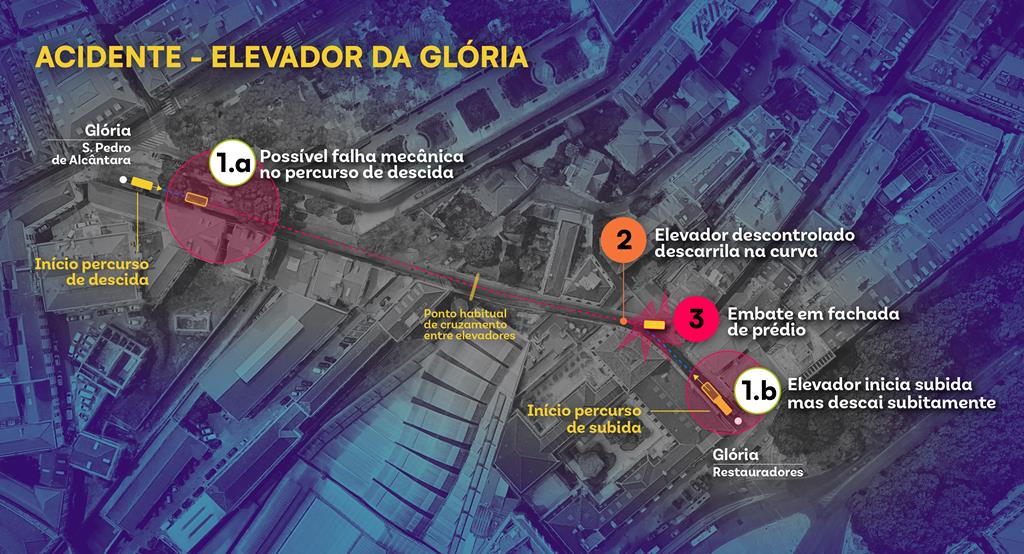 Segundo os relatos ouvidos pela Renascença e por agências, o elevador que subia a partir dos Restauradores percorreu alguns metros e descaiu subitamente, até ao ponto de partida. Logo de seguida, o elevador que descia de S. Pedro de Alcântara foi avistado a descer a Calçada da Glória, a grande velocidade, acabando por descarrilar depois de uma curva, quase no final do percurso, embatendo na fachada de um prédio.