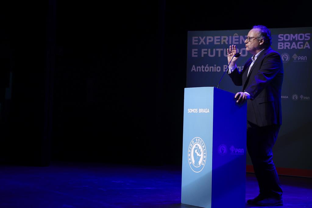 Perante o Theatro Circo cheio em Braga, o atual eurodeputado aproveitou também para criticar os adversários – avisou implicitamente a AD que “quem abdica de princípios por votos” acaba a perder as duas coisas, mas o grande destaque foi para o Chega.