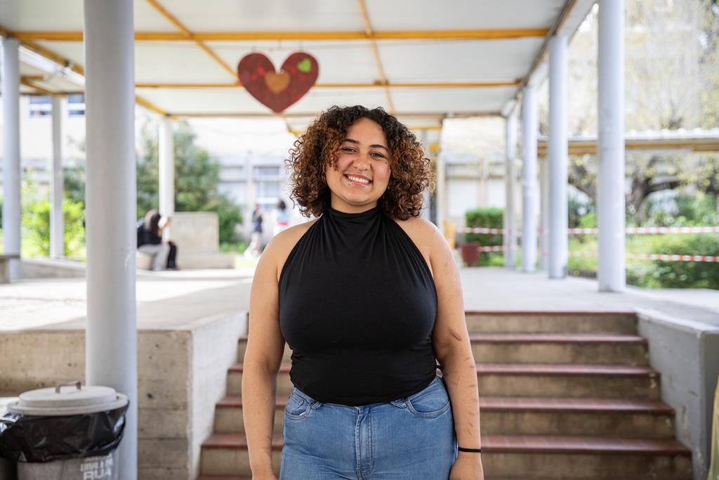 Voltamos ao grupo de alunos que, ao fim da tarde, canta ao pé do campo de jogos. Uma das estudantes é Luísa Eduardo, 17 anos, brasileira. Este é o segundo ano na escola, está no 11.º ano do curso profissional de auxiliar de farmácia e é a presidente da Associação de Estudantes.
