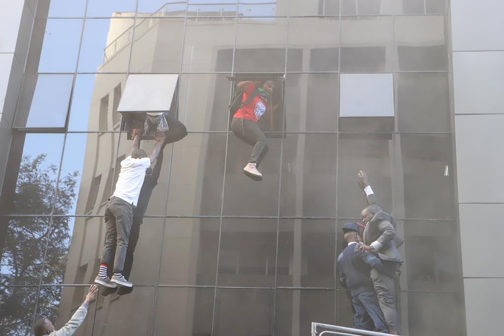 De acordo com ONG, incluindo a secção queniana da Amnistia Internacional, a polícia disparou munições reais numa tentativa de conter a multidão, que forçou a entrada no edifício do parlamento. Os edifícios foram saqueados e parcialmente incendiados.
