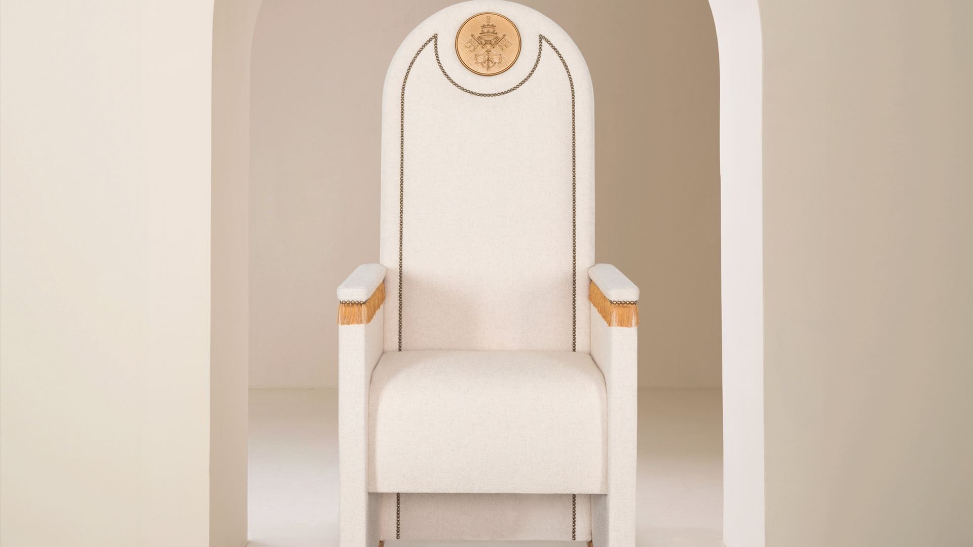 “O logótipo do Vaticano, foi feito com impressora 3D, dourado cá. De certa forma, há aqui alguma ligação, alguma inspiração na cátedra de Roma, do Vaticano, mas não tem nada a ver com a cátedra de Roma, o design é muito mais atual, muito mais minimalista”, descreve Rocha.